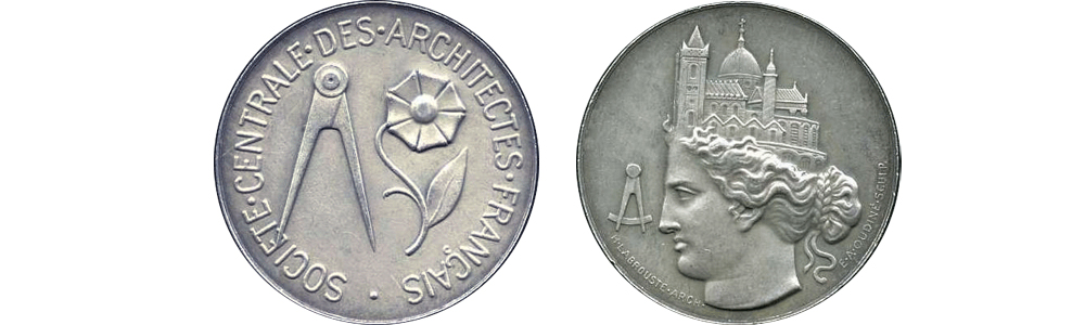Le motif symbolique du compas et de la fleur est directement issu du jeton créé en 1848 par le célèbre architecte Henri Labrouste (1801-1875) pour la Société Centrale des Architectes, dont il deviendra le vice-président en 1849.